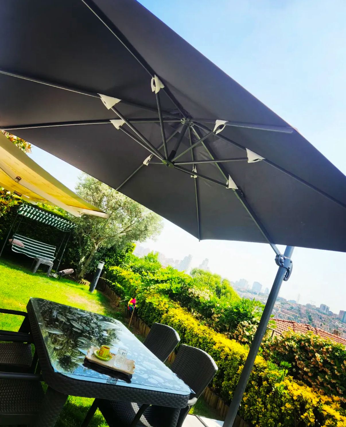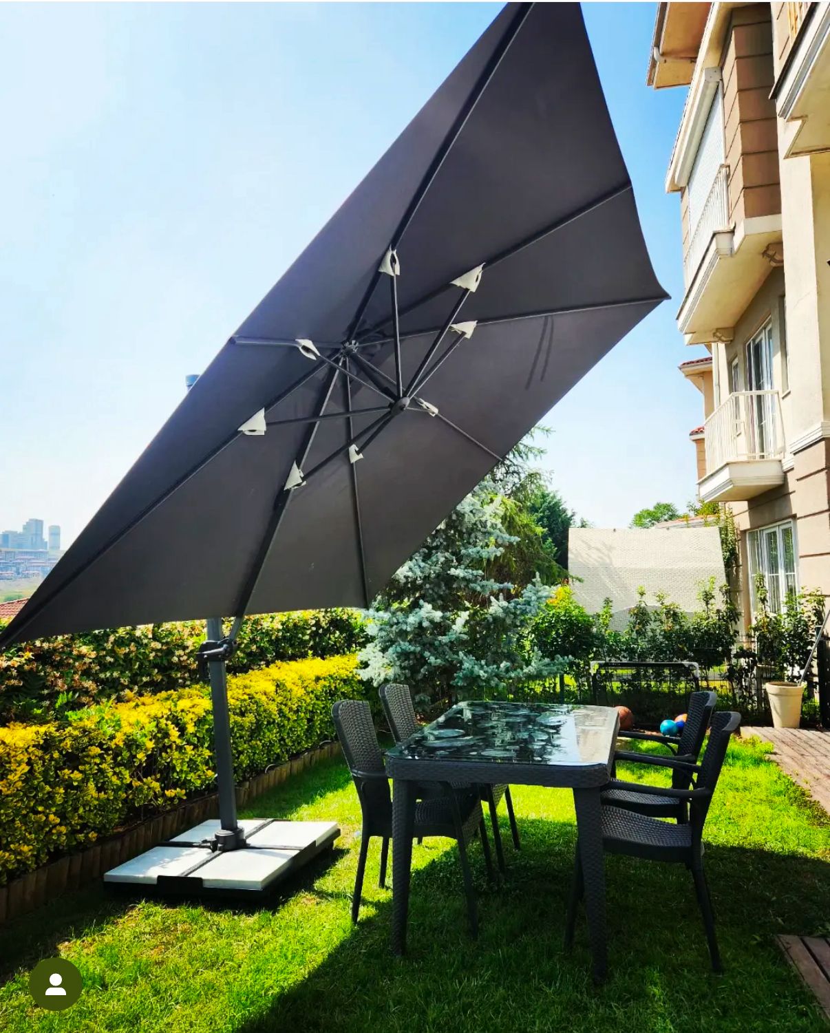 Yandan gövdeli şemsiyeler, modern tasarımları sayesinde mekân dekorasyonuna estetik bir katkı sağlar. Minimal gövde yapısı ve farklı renk seçenekleri ile kafe, restoran, havuz başı ve bahçe alanlarına uyum sağlayarak mekânın genel görünümünü zenginleştirir.